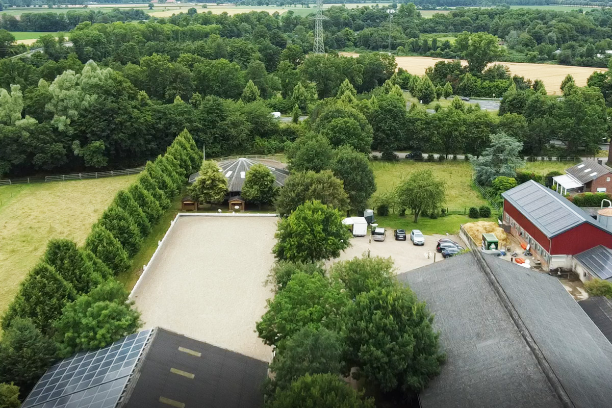 Neben der Reithalle und dem Reitplatz gibt es eine überdachte Führanlage. In ihrem Inneren befindet sich ein Longierzirkel. Darüber hinaus verfügt unsere Anlage über ein zweites, unüberdachtes Roundpen.